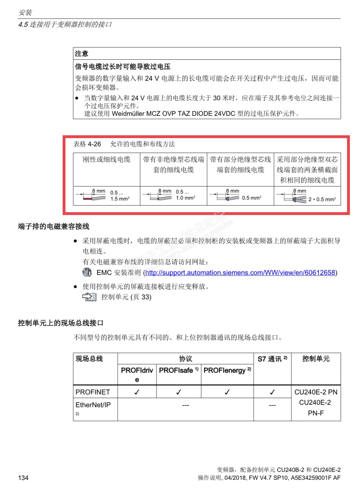 主题:回复:G120变频器CU控制器调试发现端子故障目前市面上有两面压,四面压,六面压,采用什么样的压接工具,什么形状是最好的,没有描述。两面压接在使用8毫米芯线端套时端子有时卡不住会滑脱(前端尖锐状时) 其中采用部分绝缘型双芯线端套的两条横截面积相同的细线电缆,描述为前端8毫米,后端可以两根0.5平方。我们使用中发现8毫米的有时也不好,为了卡牢往里多塞,后端绝缘端套使得端子台变形。两侧端子就不好接入了。 综述,芯线端套在使用8毫米长,两面压接时是有问题的,四面或六面压好一点,使用前端十毫米的端套应该更好;使用两根线并线时要注意使用两根线并线专用的扁形端子,而不是单线的圆形端子。