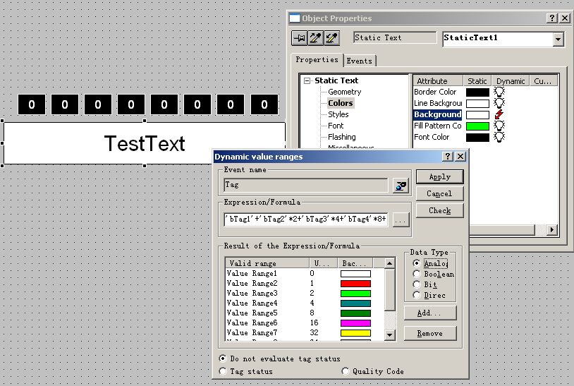 我有一个文本框我要改变他的背景色,但是我希望用8个布尔变量来表示8种不同的背景色,请问如何组态?