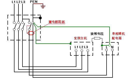 在TT这种配电方式下,通常会遇到带有漏电保护断路器。当使用变频器时要更换整定300mA的漏电分断。