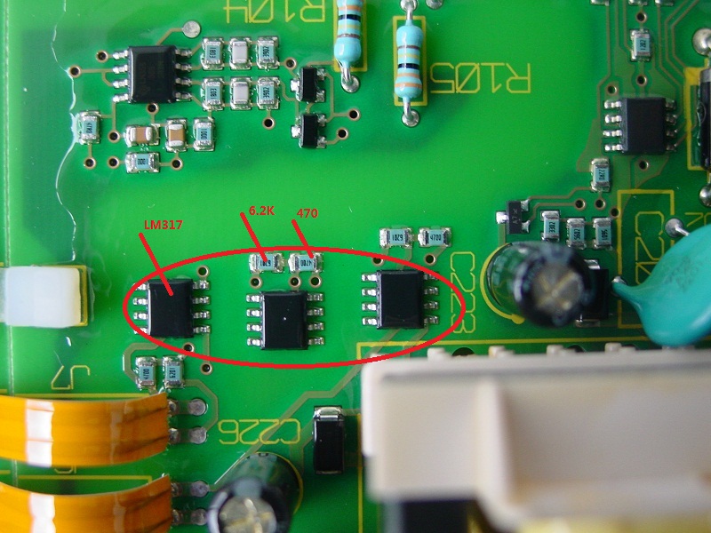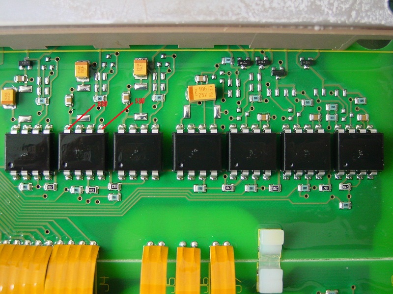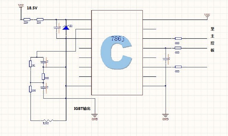 MM440/430变频器通常在使用一段时间后,由于现场环境的原因(粉尘、腐蚀、潮湿等)出现上电报‘F0001’故障,按‘Fn’键不能复位的现象。‘F0001’是变频器过电流,变频器在没有启动、运行的情况下为什么会过电流呢?根据这些年的维修经验,总结出以下几点可能:(首先将电机脱开,排除电机短路、接地故障的可能) 1、 IGBT损坏,这种毛病最好判断。用普通万用表做静态阻值测量就能大致确定。 2、 接插件腐蚀、氧化,接触不好,这种毛病也不难判断。只要将机器打开,将接插件重新插拔几次,并且在上电的情况下,一边动一边按‘Fn’键,看能否复位,如果偶尔出现过能复位的情况,则可认为极有可能是接插件接触问题所导致。 3、 电路板上有元器件损坏、变值。这种情形是在排除以上两种可能的情况下做出的怀疑。既然是过电流,当然要从电流检测电路单元查起了。 现将我最近维修的一台MM440-7.5Kw的变频器的维修过程跟大家分享一下,希望对感兴趣的朋友有所帮助,同时也希望起到抛砖引玉的效果,期盼得到更多高人的指点。 下图是这台机器的电流检测单元电路照片: 电流检测部分原理图 一开始,我看到单元电路外围贴片电阻有被腐蚀、氧化的痕迹,于是将怀疑的电阻吹下测量,可是没有发现问题。再将786j 光耦换掉,上电,发现故障依旧。这时,我发现我已经走了弯路。于是对照786j 的图纸,上电测量各脚电压。发现其1脚对地只有2V多点,其1脚和3脚之间有一个5V的稳压管,该稳压管的两端也同样是2V多点。显然这个电压是有问题的!到底是什么地方出问题?为了避免损坏模块(IGBT),我将模块拆下,用线将该连通的线都连好,开始逐步往前排查。 IGBT驱动部分照片 光耦1脚的5V电源来自IGBT驱动18.5V的电源,而驱动光耦4506的5、8脚应该是18.5V,而惟独这一路只有4、5V左右,难道是4506这个驱动光耦坏了,或者是驱动部分的贴片稳压管坏了?(根据以往的经验,这两样东西可能性最大)于是将它们拆掉,再次上电测量,还是4、5V左右,问题可以肯定也不在驱动电路单元部分。于是再往前排查。 驱动电源供给部分照片 开关电源供给驱动的是4路18.5V的电源,其中一路是供IGBT下桥臂的三个光耦用的,另外三路是分别供IGBT的上桥臂的三个光耦用的(几乎绝大多数的、各种品牌的变频器都是这种设计)。 将有问题的一路,LM317测下测量,发现也是好的。只有外围的两个电阻可能出问题了,将6.2K的电阻测下测量,果然阻值相差很多,只有2K左右。于是将其换掉,再次上电测量,OK!至此,问题才真正找到,维修告一段落。