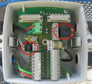 如果您初次使用MAG5000和MAG6000系列电磁流量计,而且传感器和变送器为分体安装,那么在接线时一定要注意下列事项,否则上电后流量计报F70错误,提示励磁电流有问题。分体式的电磁流量计,其励磁电缆和电极电缆出厂时插在传感器的端子排上,如下图所示: ![]() 用户使用时,必须将上述端子从原来的端子排上拆下来,连接到流量计的主电路板上,如下图所示: ![]()