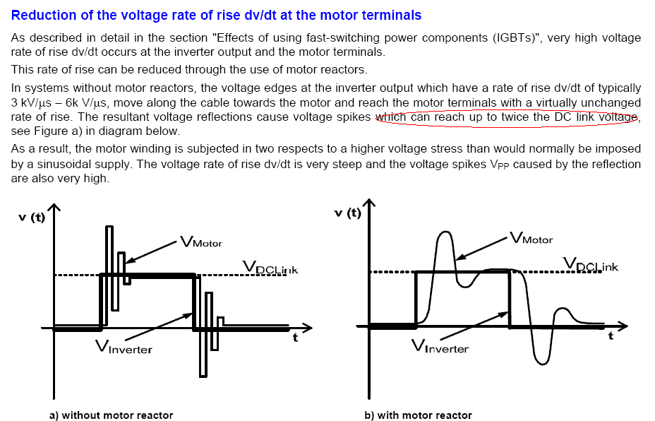 K版,是不是可以理解如果电机的绝缘电压是额定电压两倍以上,电抗器可以不要?如果没记错的话,感应电压和额定电压的叠加最大会达到两倍。