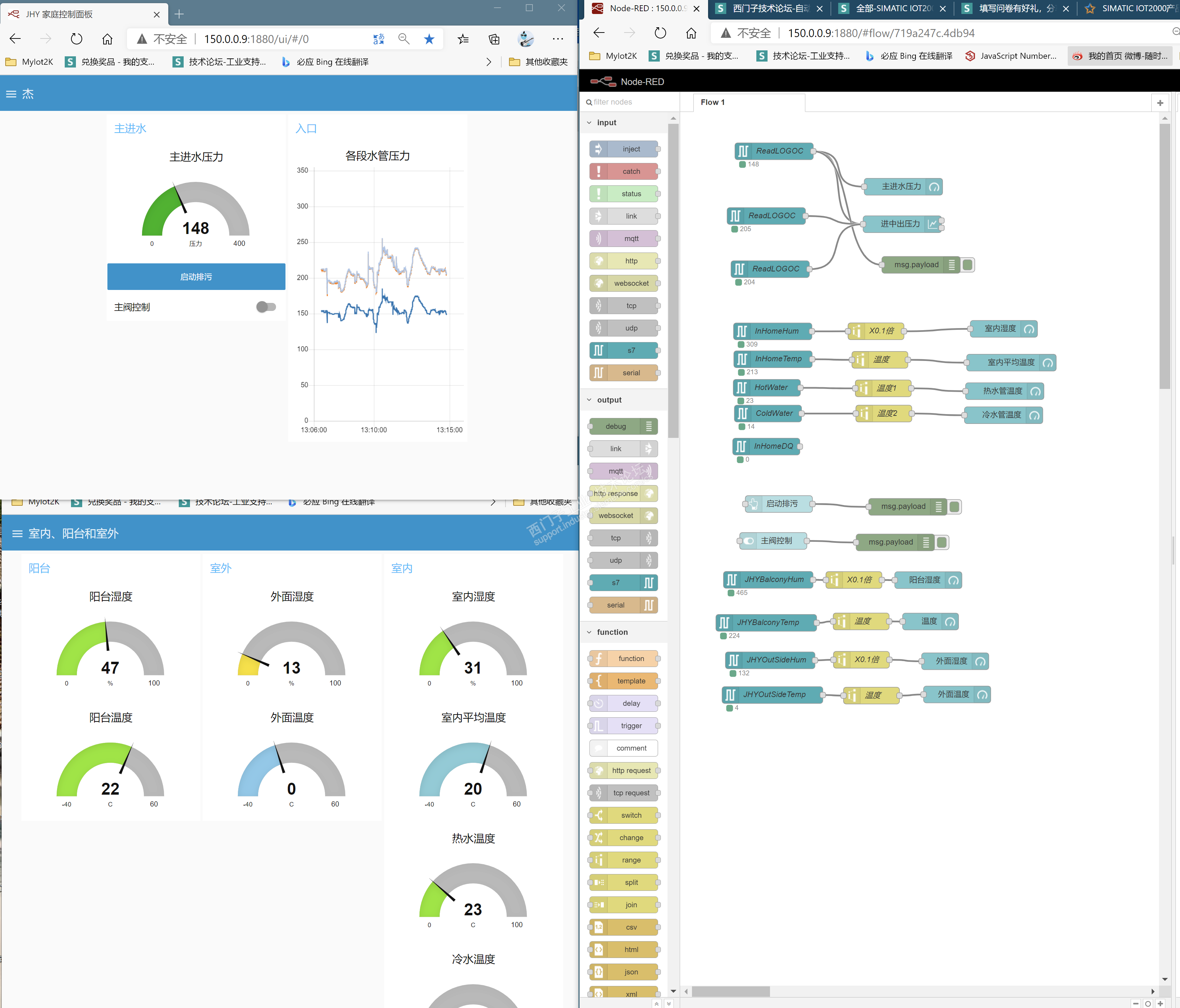 主题:【分享】IOT 2000精彩案例分享1_数据采集 使用产品:IOT2040 案例分享: 我所使用的是 IOT2040,主要是解决异地的远程信息交互传递。而IOT2040又是西门子逐步走入市场的产品,有必要熟悉它,以及连接其他各种西门子产品的方法。 自己购买一台IOT2040,从官方获得IOT2040一台。除了一台用于磨床远程信息交换外,另一台用于信号采集。 这台用于传感器信号采集的主要是通过7台LOGO!0BA8、0BA7将局域网内各信号采集,经S7 TCP 由IOT2040汇集,利用Node_Red 编程,且使用DashBoard显示相关信息。已经无故障使用3年了。最近准备再添加一些传感器(如风速仪等)。 IOT2040尽管没有连接付费的服务器,但可以连接邮件服务器,通过交换邮件,远程获得汇总信息,并IOT2040接收指定的邮件,控制(阀、开关)动作。 |