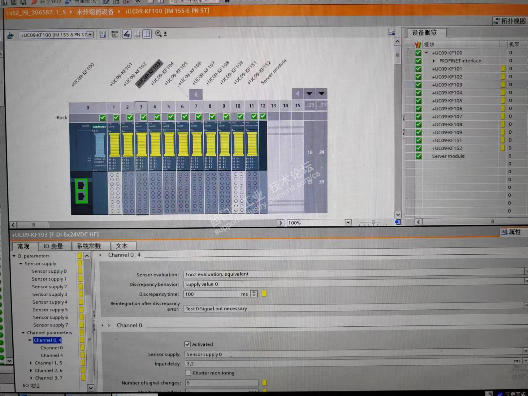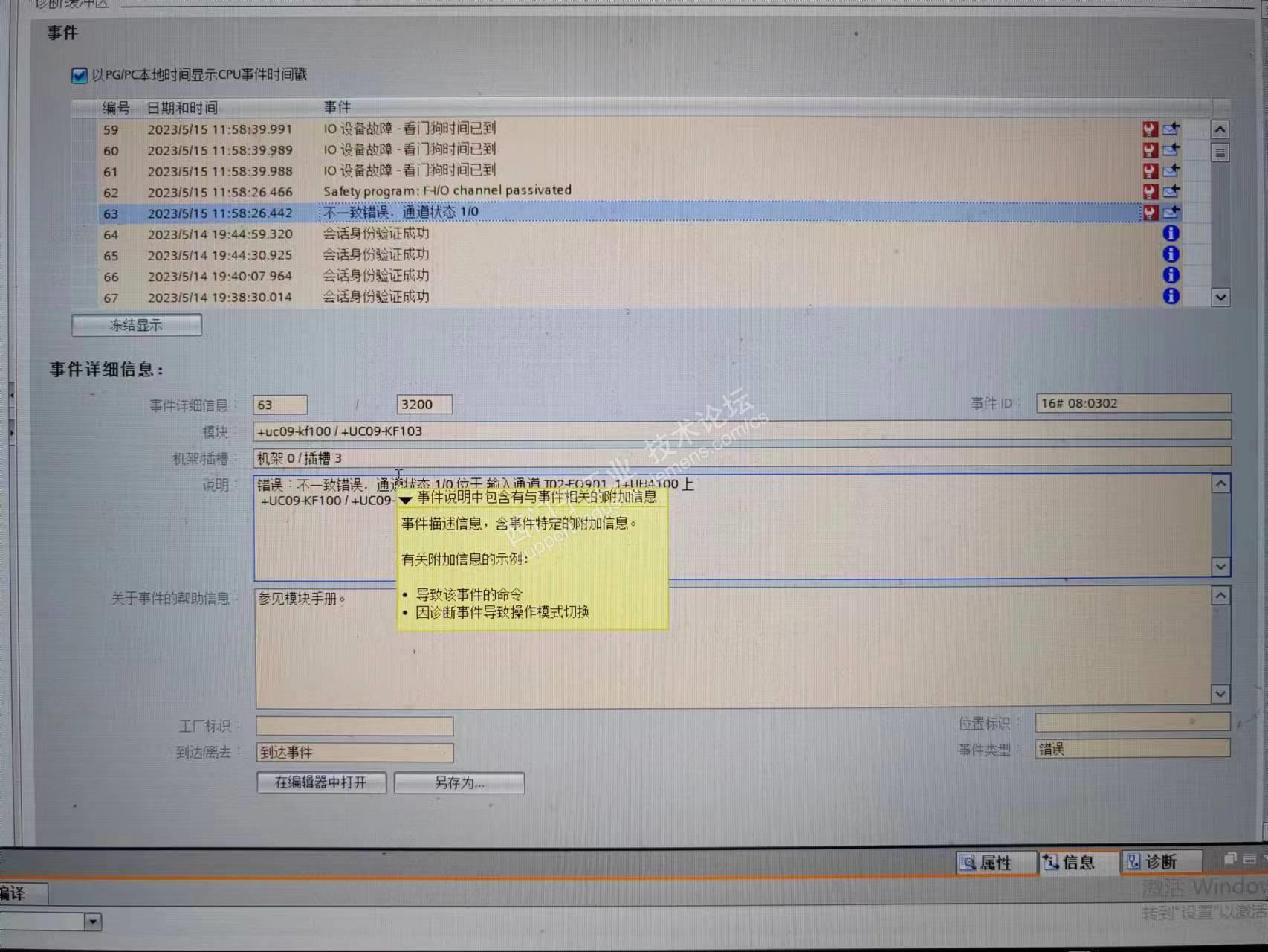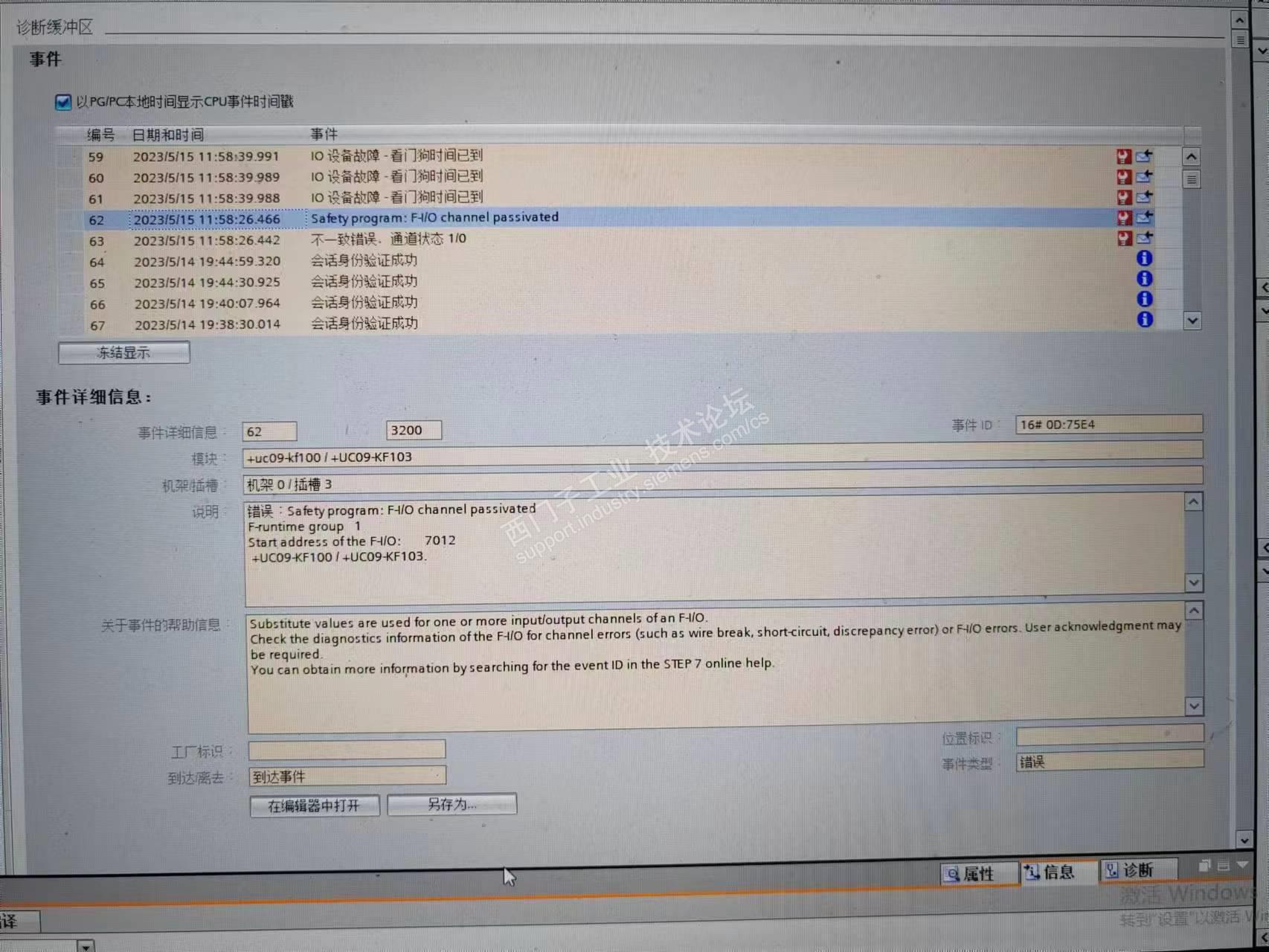 主题:ET200SP安全模块 某日,产线急停故障报警,经检查模块红灯闪烁,手摸温度较高,怀疑是温度造成的模块不稳定,随之复位,重新插拔复位。并将空调温度降低,又过了半月,同样的报警,再查发现硬件组态中有记录,判断不是温度造成的报警,显示为不一致错误,即急停的双闭点造成的不一致性,检查现场无异常,不管是急停按钮还是电缆,铺设很标准,停机未见异常。