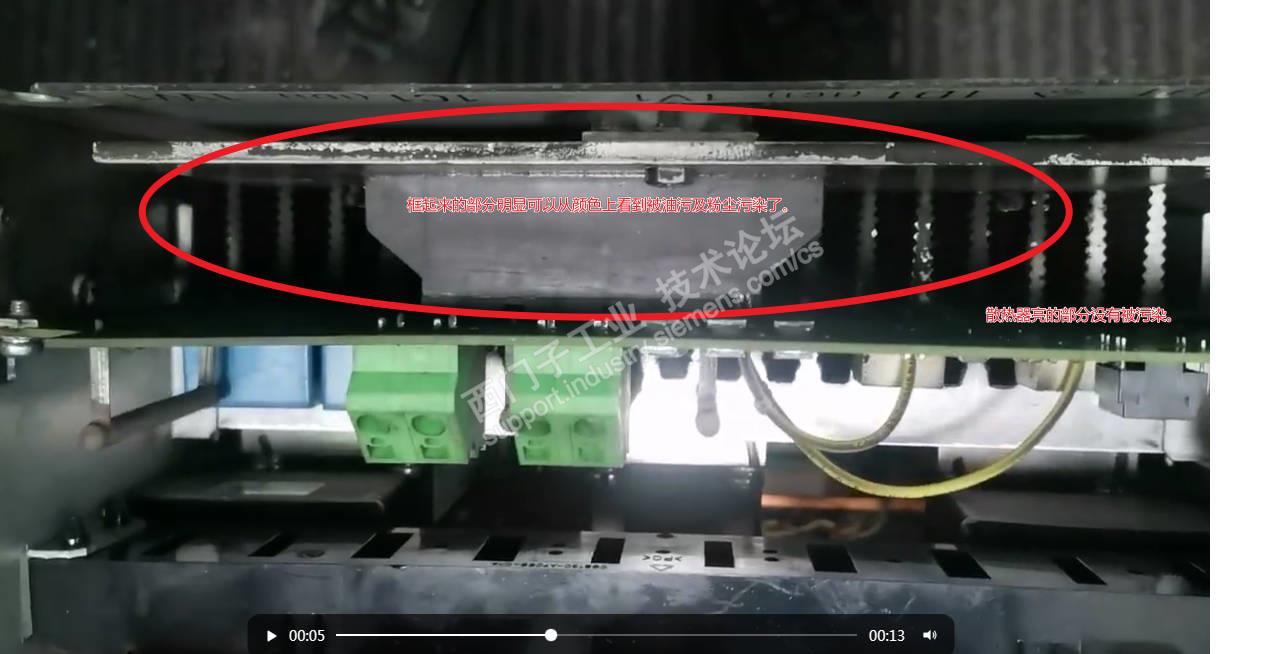 主题:回复:一起8RA80直流驱动器报警炸机的处理过程6RA80驱动器故障现场的大致分析: 没有完全打开驱动器(主要原因是器件在保内,需要返厂维修)。 从外观看,该励磁控制板,及可控硅元件,被安装在驱动器进风口处,从散热器铝翘板上看视乎有油状物质,且线路板上有炸裂及轻微的油污污染痕迹。 首先从油污污染分析,该设备自安装完整后,因为我需要为第二套设备的控制柜安装,做准备,故没有及时安装好空调房,也正是这近视2个多月的时间,该设备的控制柜是裸露在外面的。但是,控制柜门的关闭的,因为控制柜在没有安装空调房前,驱动器等大型器件的冷却是依靠原控制柜内空调来冷却的,也可能正是那段时间进入的油污粉尘。其次,从可控硅炸裂接地看,也可能是因为励磁控制板板面存在油污、粉尘后,造成部分电路短路,引起的过电压炸裂。我从励磁驱动器可控硅的控制极(导线连接)处,看到有限流电阻烧焦的痕迹,其它部位没有看到明显的烧焦痕迹,没有彻底打开驱动器只能从外观判断分析到此。也会让设备制造商反馈一些西门子维修过程的信息,以便以后使用过程中规避类似的问题。 |