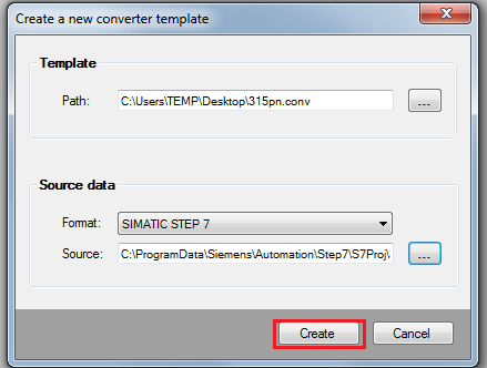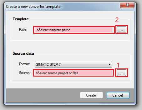 设置转换模板路径和被转换的源文件(Step7项目)。