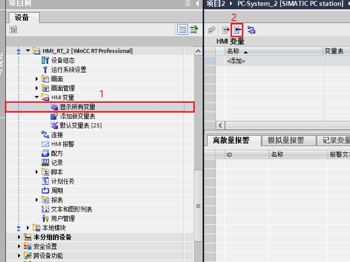 也可以通过工具导入变量,打开“ HMI 变量”中的“显示所有变量”,点“导入”。