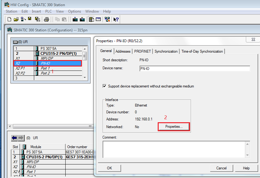 双击 CPU 的 PN-IO 端口,打开网络属性对话框,点击“Properties”。