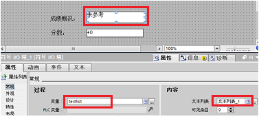 画面中添加了符号I/O 域,且创建了变量“"textlist"