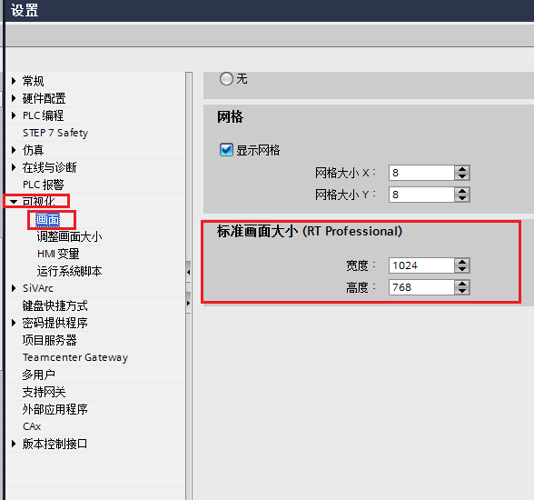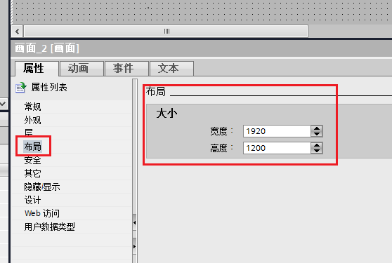 设置好初始分辨率后,新建画面的分辨率都默认是初始分辨率,如果需要单独调整单个画面的分辨率,可以在画面的布局中修改(打开画面,点击画面空白处点右键,属性,布局)。