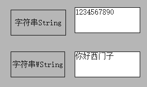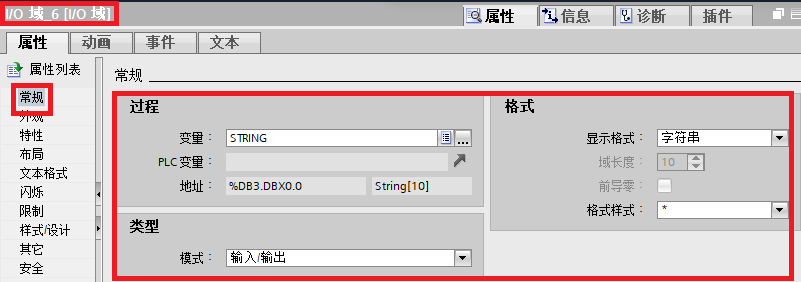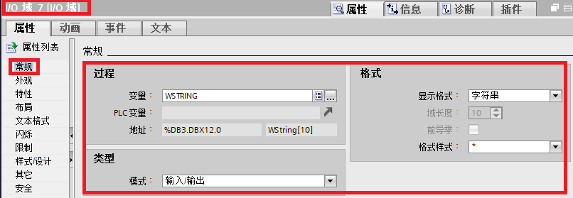 在“画面_1”上添加“I/O域_6”和“I/O域_7”分别关联字符串变量“STRING”和“WSTRING”,用来显示其输出值:
