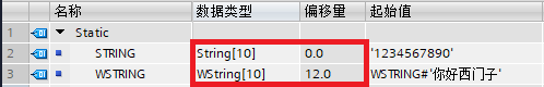 S7-1500 PLC的DB块创建的字符串变量(长度为10个字节),如下所示:
