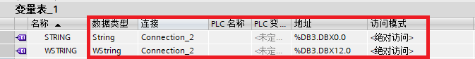 WinCC RT PRO变量表中创建的变量最好要与PLC中的数据类型,长度,地址一一对应。