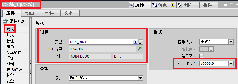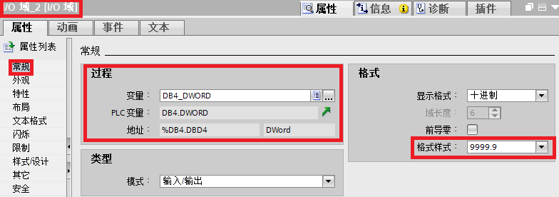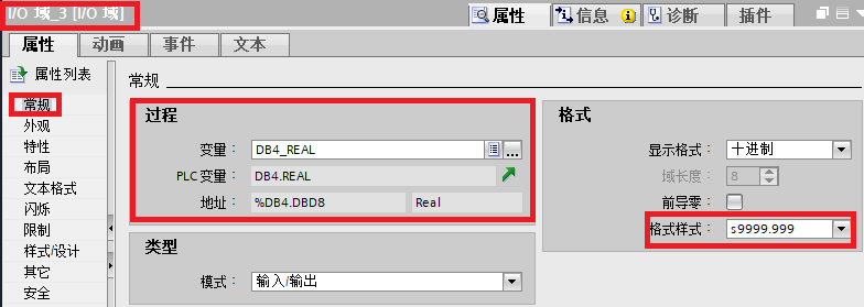 4.在“画面_1”上添加“I/O域_1”,“I/O域_2”和“I/O域_3”关联上述三个变量,用来显示其缩小10.0倍的值: