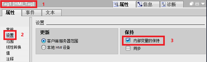 3.内部变量“Tag1”的断电保持设置,如下所示: