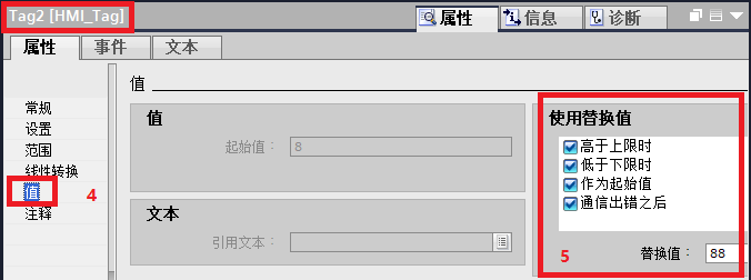 5.但是PLC变量可以设置一个变量的替换值,用于超出变量的上下限设置或通信出错时进行替换,如下所示: