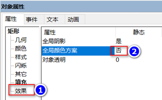 矩形的填充颜色可以设置,但前提是取消“全局颜色方案”。如下图所示:
