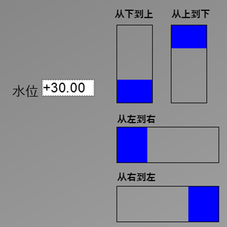 填充方向可以设置为“从下到上”、“从上到下”、“从左到右”和“从右到左”四种,效果如下图所示: