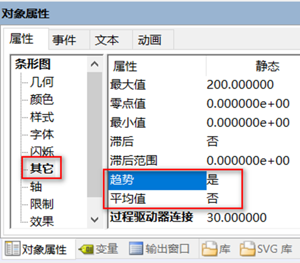 WinCC棒图属性中还可以设置是否使用平均值和趋势,如下图所示: