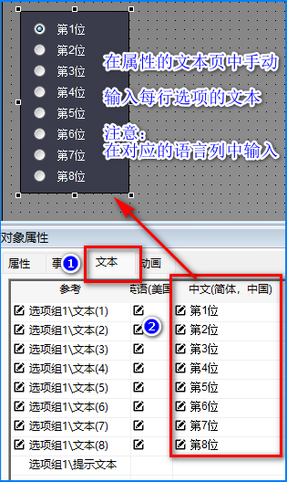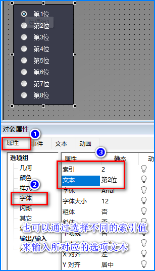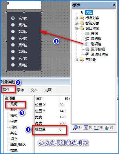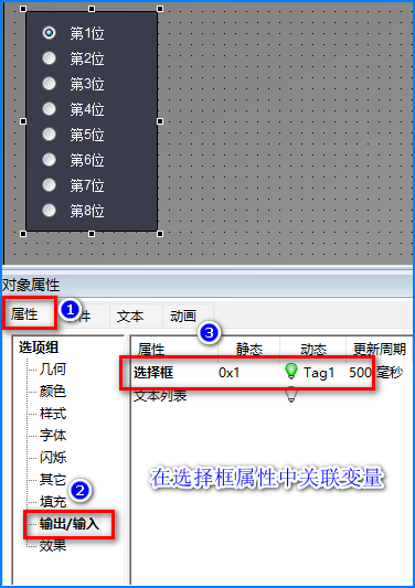 以 WinCC V8.0 为例,单选框详细组态如下。