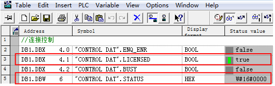 4、将LICENSE_DB(DB3)下载到CPU中,CPU的INTF指示灯熄灭;并可通过查看MODBUSPN(FB102)的输出引脚LICENSED为true且不再报A090错误代码,确认注册码激活成功,如图41所示。