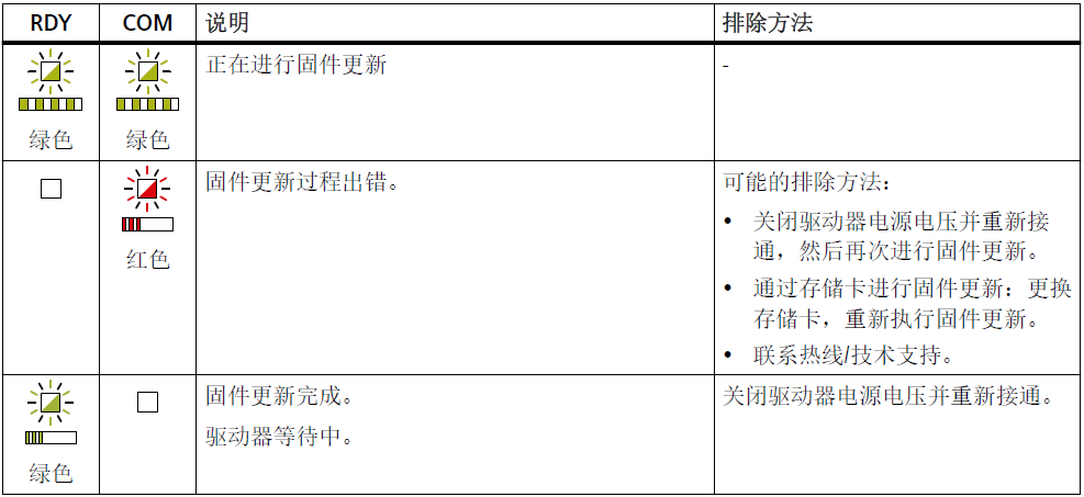 1、驱动器启动和运行期间 RDY 和 COM LED 的信号状态