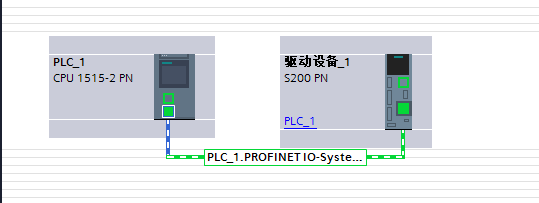 2、网络视图中,建立S200 PN与PLC的网络连接,并分别设置S7-1500及S200 PN的IP地址及设备名称。