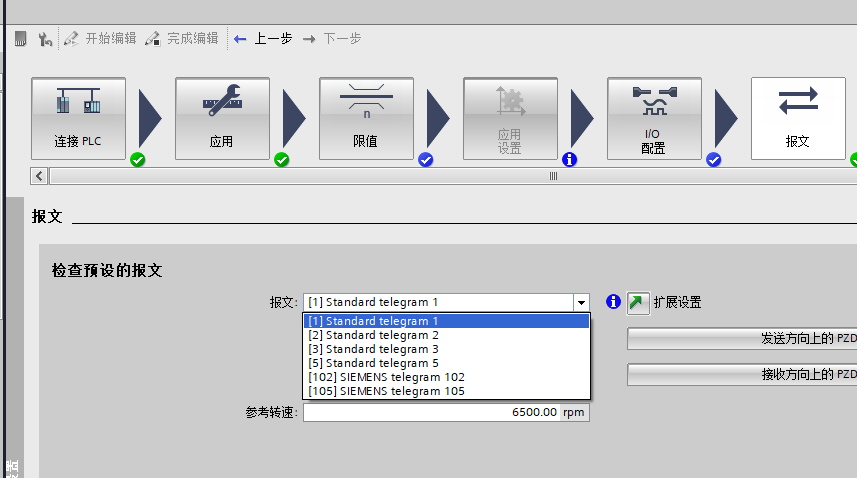 2. 因为在SINA_SPEED功能块仅支持1号报文,所以在快速式引导设置中,报文必须选择为标准报文1。