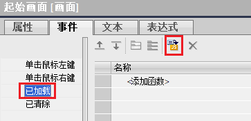 - “起始画面”属性--->“已加载”事件中点击JS图标进入代码编写界面