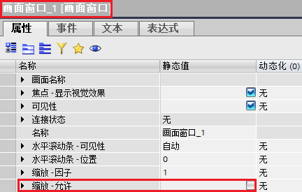场景2:如果使用“画面窗口“控件构建画面布局,只需要在“画面窗口”的属性中取消勾选 “缩放-允许”选项即可。