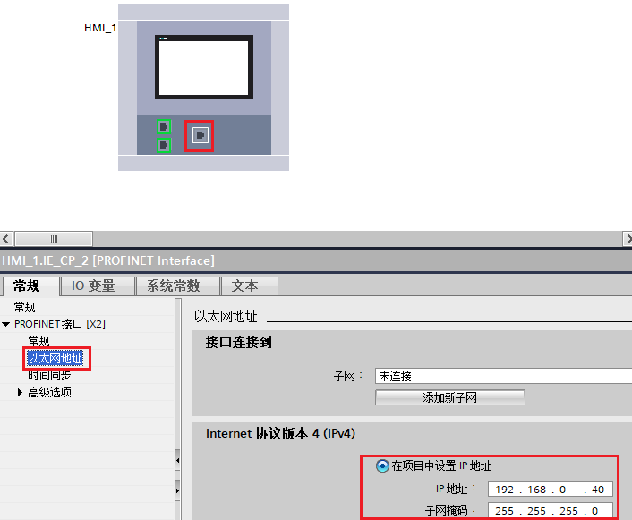 如果设备类型一致,在HMI的设备组态中设置和实际屏上所分配的相同IP地址以便快捷搜索HMI设备。