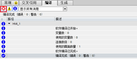 单击HMI设备后使用工具栏的“编译“按钮编译HMI项目。