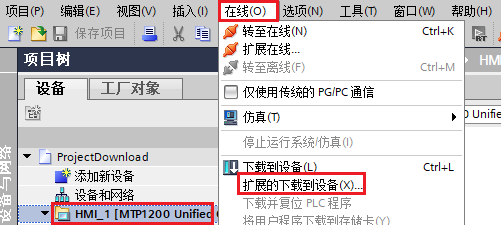 在项目树中选中HMI设备,点击工具栏中的下载按钮
