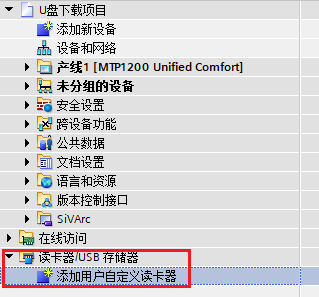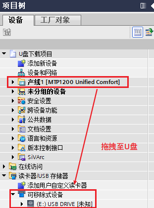 在项目树下将HMI设备拖拽到U盘即可创建U盘下载的项目。