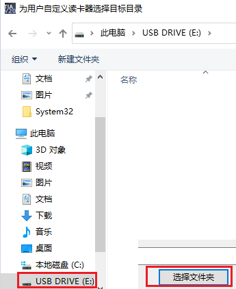 在项目树下的“读卡器/USB存储器”中点击“添加用户自定义读卡器”,在弹出的窗口中双击选择识别到的U盘。