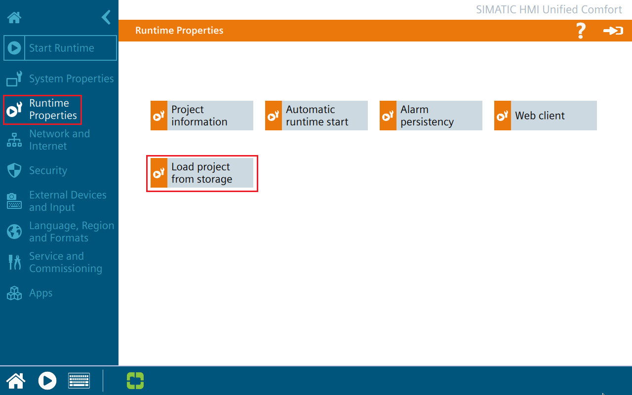 点击左侧“导航区域”中的“Runtime Properties”,在右侧的显示界面中点击“Load project from storage”。