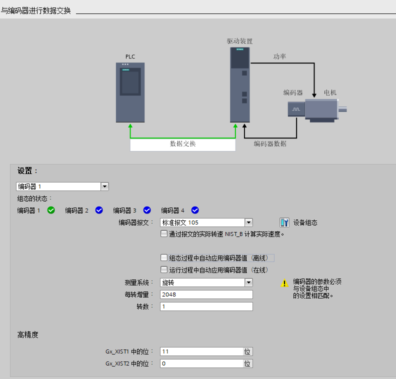 1.3 在 “与编码器进行数据交换”的组态中: