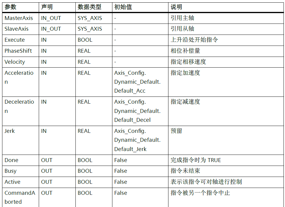 该指令让 MC_CamIn\MC_GearIn 主轴相对于现在的相位,偏移指定的相位。