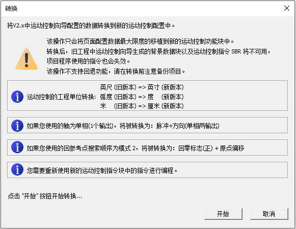 点击“开始”开始转换,转换完成后运动控制向导转移到运动控制。