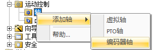 选中“运动控制”(Motion Control)文件夹,右键“添加”-“轴”-“编码器轴”如下图所示。