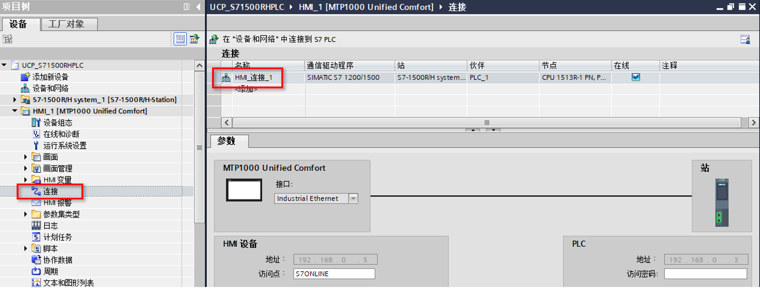 步骤4:可以在 HMI 设备的“连接”中查看创建的 HMI 连接信息。