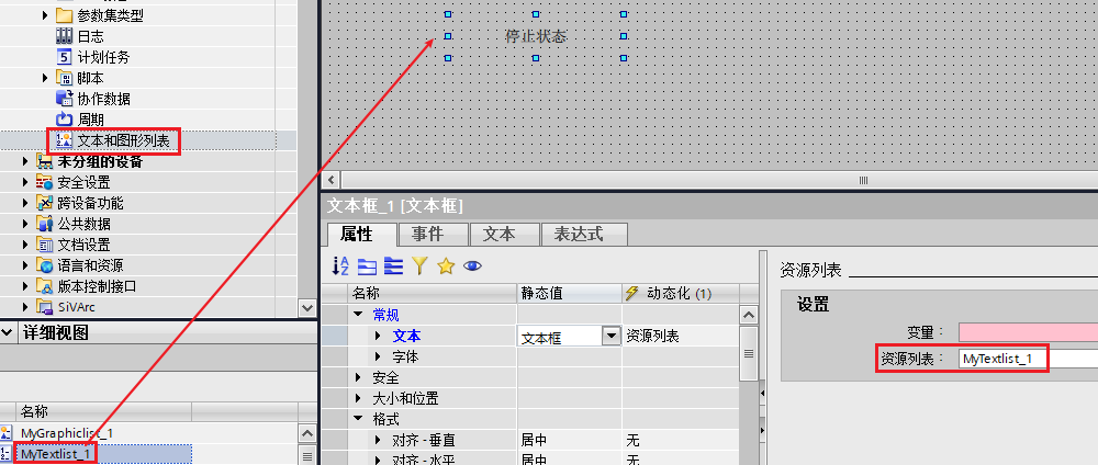 文本列表和图形列表可以实现变量值的不同而显示不同的文本或图形,也可以通过选择不同的文本列表条目或者图形列表条目实现PLC变量的赋值操作。在TIA Portal WinCC Unified 软件中组态完文本列表或者图形列表后,通过“详细视图”可以快速完成文本列表或图形列表的调用。