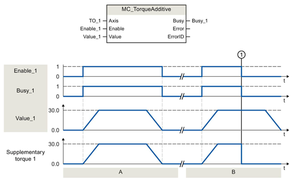 - 通过"MC_TorqueAdditive" 命令为工艺对象的驱动装置指定一个附加转矩;