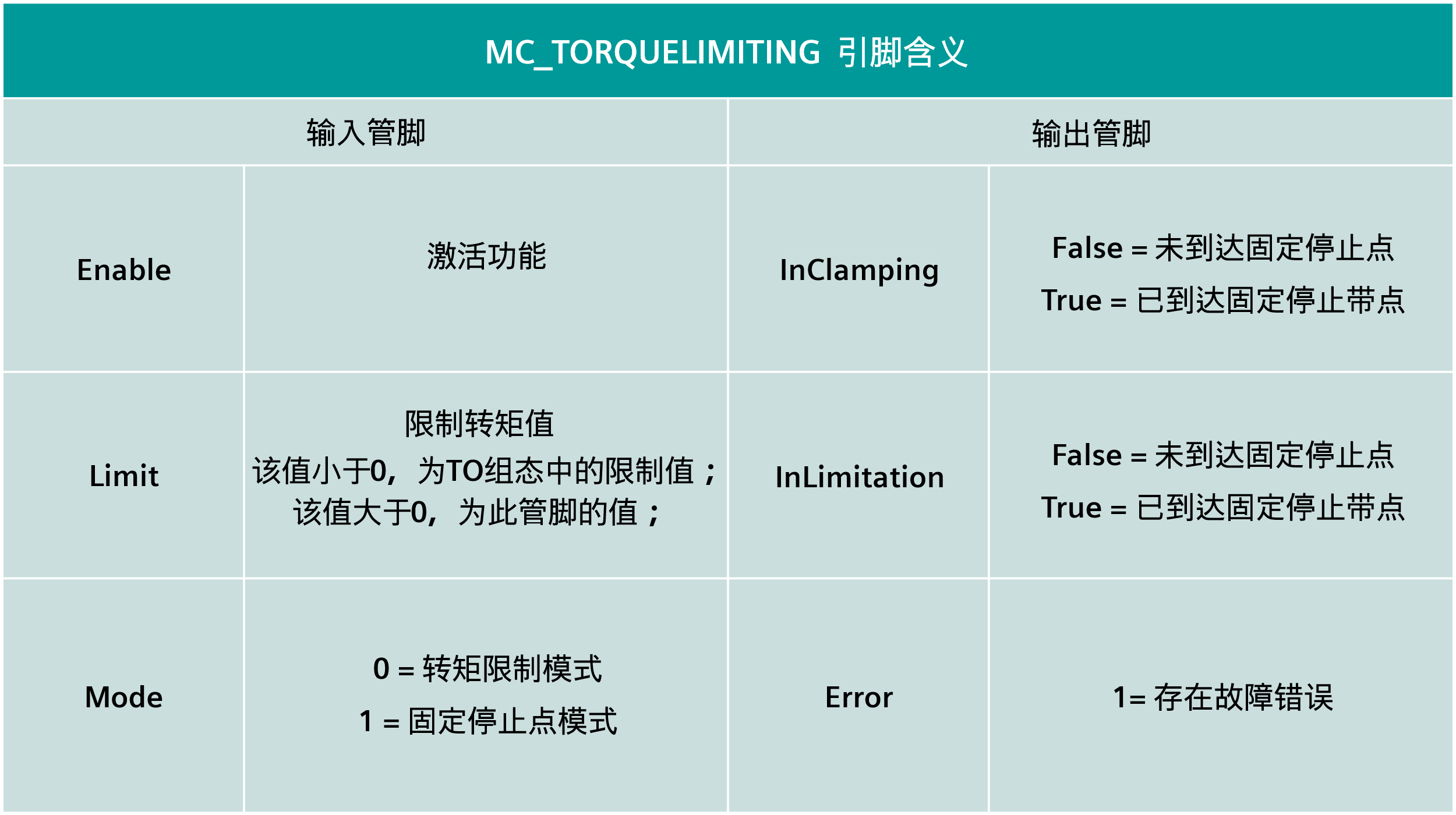 - 控制器为S7-1500 系列PLC,否则无法使用“MC_TorqueLimiting” 功能块;