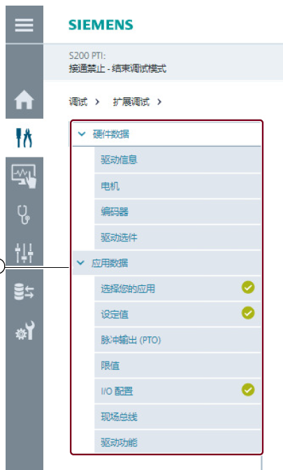 1、S200 PTI的运行模式:可以通过“扩展调试”>>“应用数据”>>“选择您的应用”>>选择“转矩控制”实现。