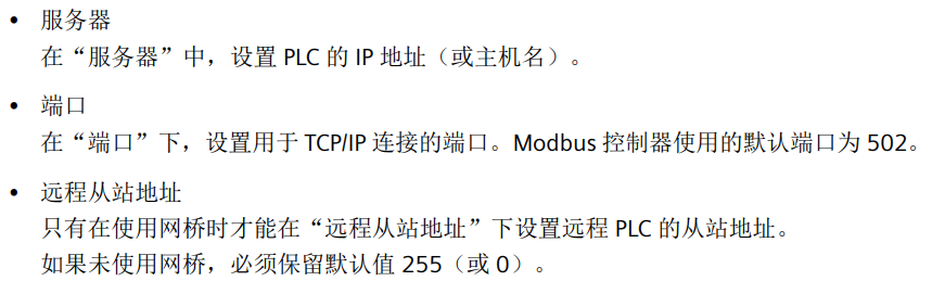 步骤3:根据 Modbus 控制器的参数配置通信连接的参数。