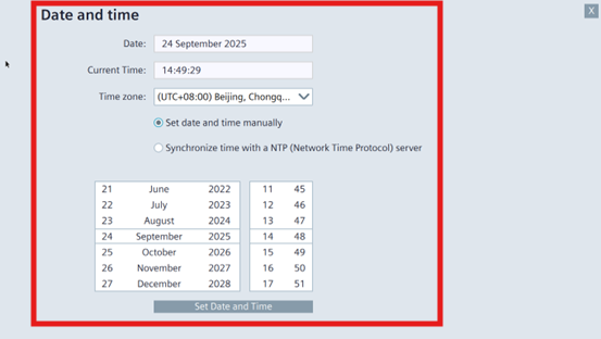 在项目运行时,按下这个按钮,会打开日期和时间主页,在打开的日期和时间主页中可以设置 HMI 的时间。
