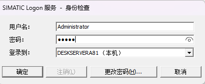 (2)弹出身份检查窗口:输入当前Windows用户名和密码。“登录到” 选择本地计算机名称,本例中计算机名称为 “DESKSERVERA81”,点击“确定”。