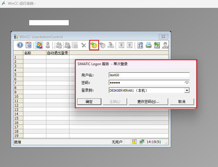 4、WinCC画面组态:使用WinCC UserAdminControl控件以及内部变量 @CurrentUserName登录并显示用户信息