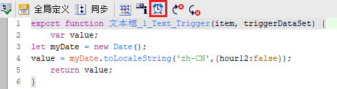 点击脚本编辑器中的小闹钟图标用以添加“触发器”,本例设置为“T1s”。